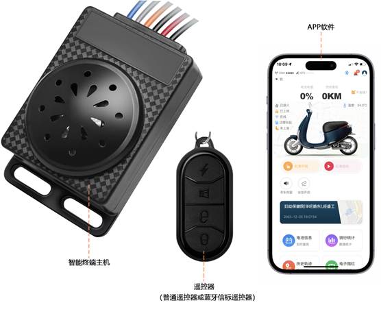 智能终端主机在非个人用户版单卖的情况下已集成于两轮车产品中;遥控器分两类:普通遥控器以及蓝牙信标遥控器,做产品配置时一般二选一即可。因此用户最终可接触并使用的产品实物主要为:普通遥控器或蓝牙信标遥控器以及APP软件。
