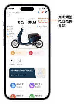 电池电量以及预估里程可在主界面顶部查看,这两个参数由APP根据当前车辆电池电压,以及用户绑定车辆时的提供的电池电机等参数计算而得。