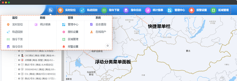 可弹出浮动分类菜单面板,从面板选择菜单项进入指定功能后,该菜单项会自动添加至快捷菜单栏中,作为临时菜单项,临时菜单项可通过鼠标点击菜单项右上角的“x”移除。
